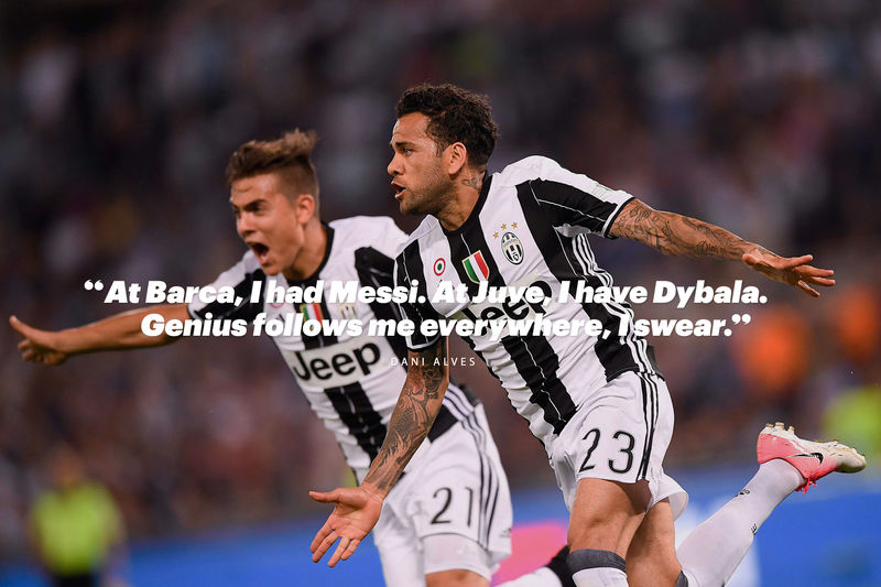 Počúvajte, poviem Vám ďalšie tajomstvo. Predtým ako som nastupoval proti najlepším útočníkom na svete - Messimu, Neymarovi, Cristianovi - ako posadnutý som študoval ich silné stránky a slabiny a potom som plánoval, ako budem útočiť. Mojím cieľom je ukázať celému svetu, že Dani Alves je na rovnakej úrovni. Možno sa cezomňa jeden alebo dva krát prekľučkujú. Jasné, OK. Ale ja budem útočiť tiež. Nechcem byť neviditeľný. Dokonca aj v 34 rokoch, po 34 získaných trofejách, stále to musím dokazovať.